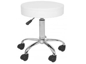 Silla giratoria con asientos acolchados 8 cm tapizados en cuerina con costura Palanca para la elevación de pistón Base de 5 puntas cromadas y garrucha de nylon Colores: balanco y negro